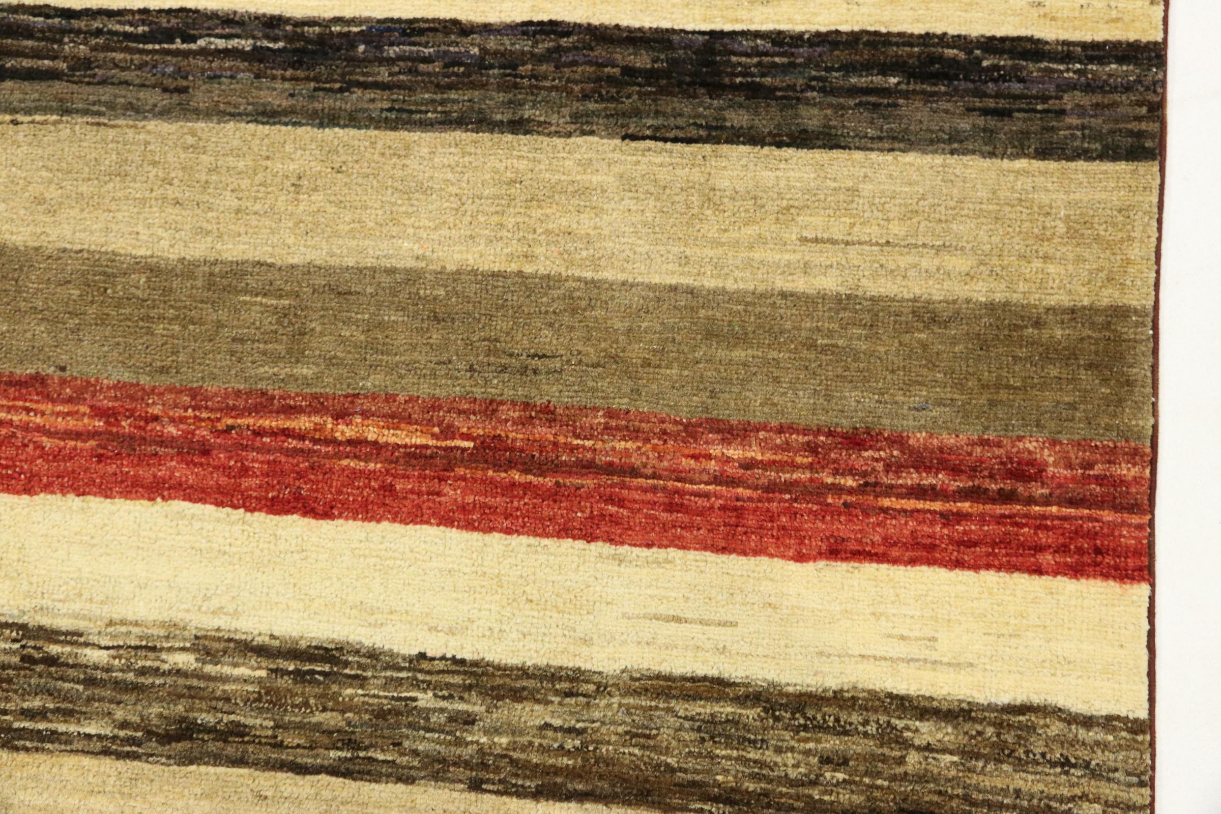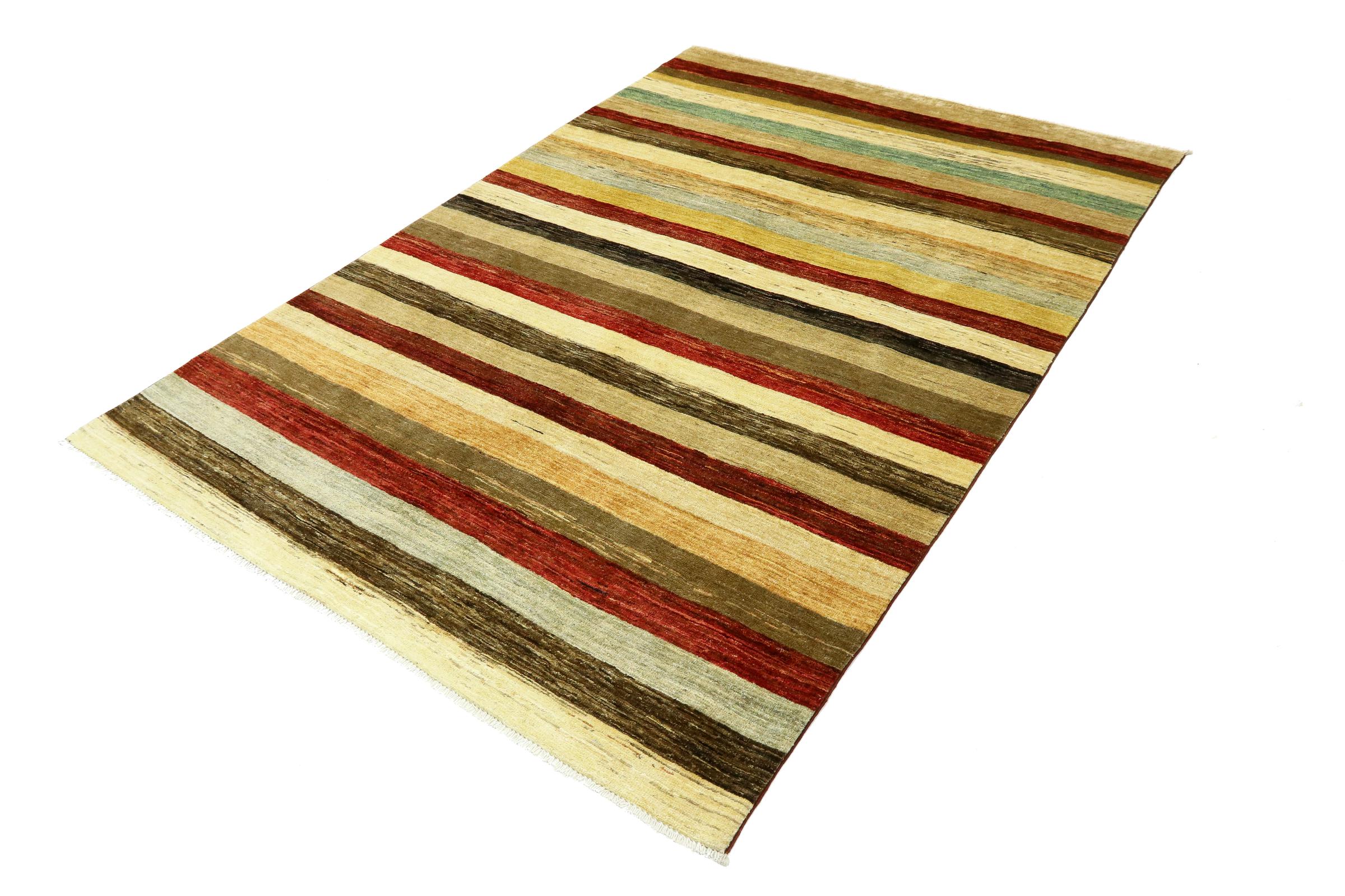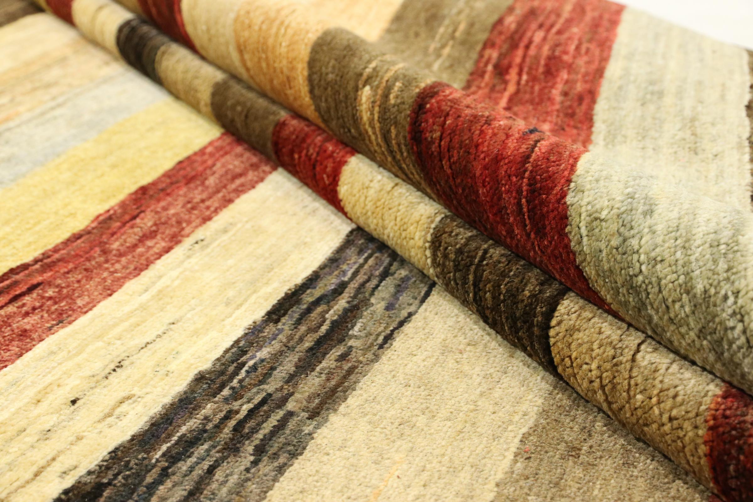 Este tapete Ziegler moderno foi feito à mão no Paquistão em novas cores e padrões. O design e as cores vibrantes deste tipo de tapete são convincentes em interiores modernos. Ao contrário dos tapetes Ziegler tradicionais, este tapete não tem os ornamentos dos tapetes persas tradicionais. Tem um design único combinado com a alta qualidade da lã de ovelha natural e o artesanato tradicional.
